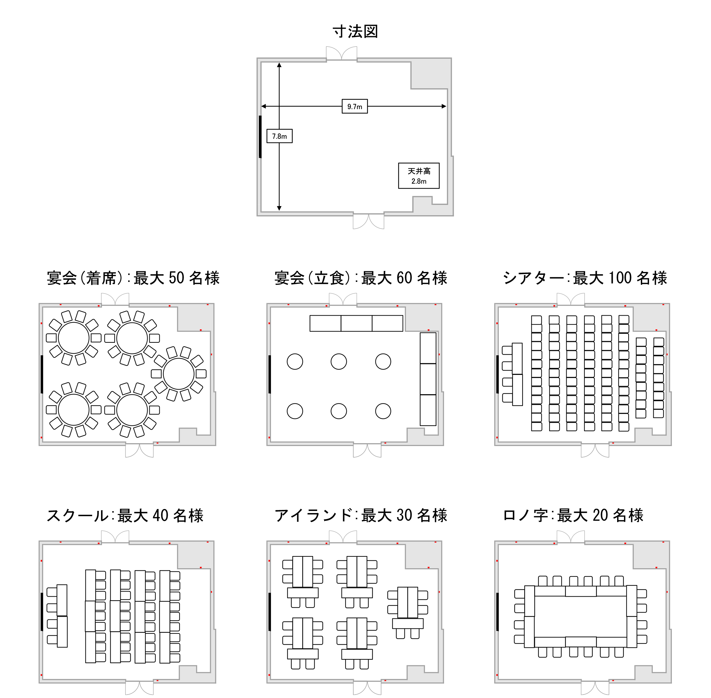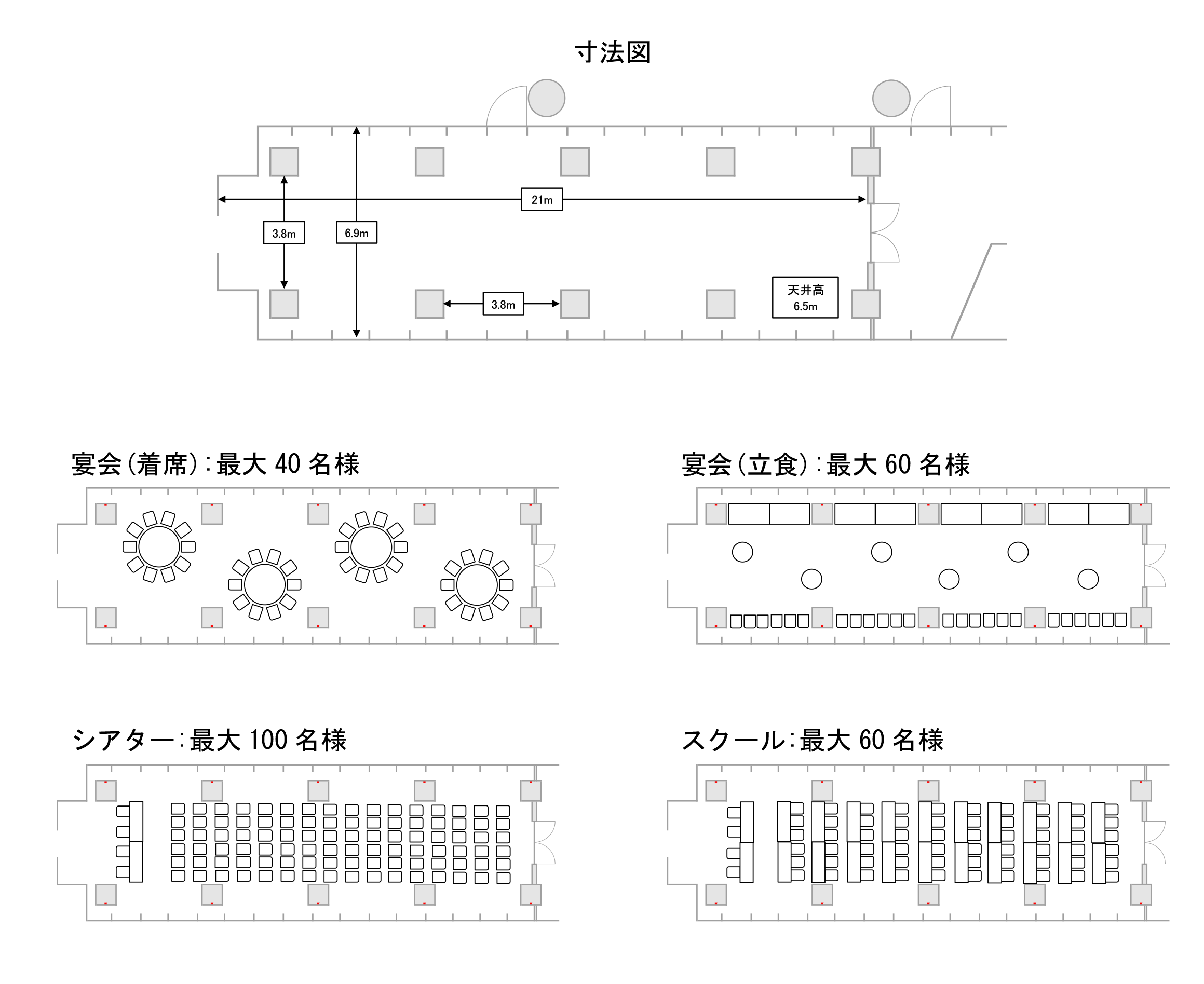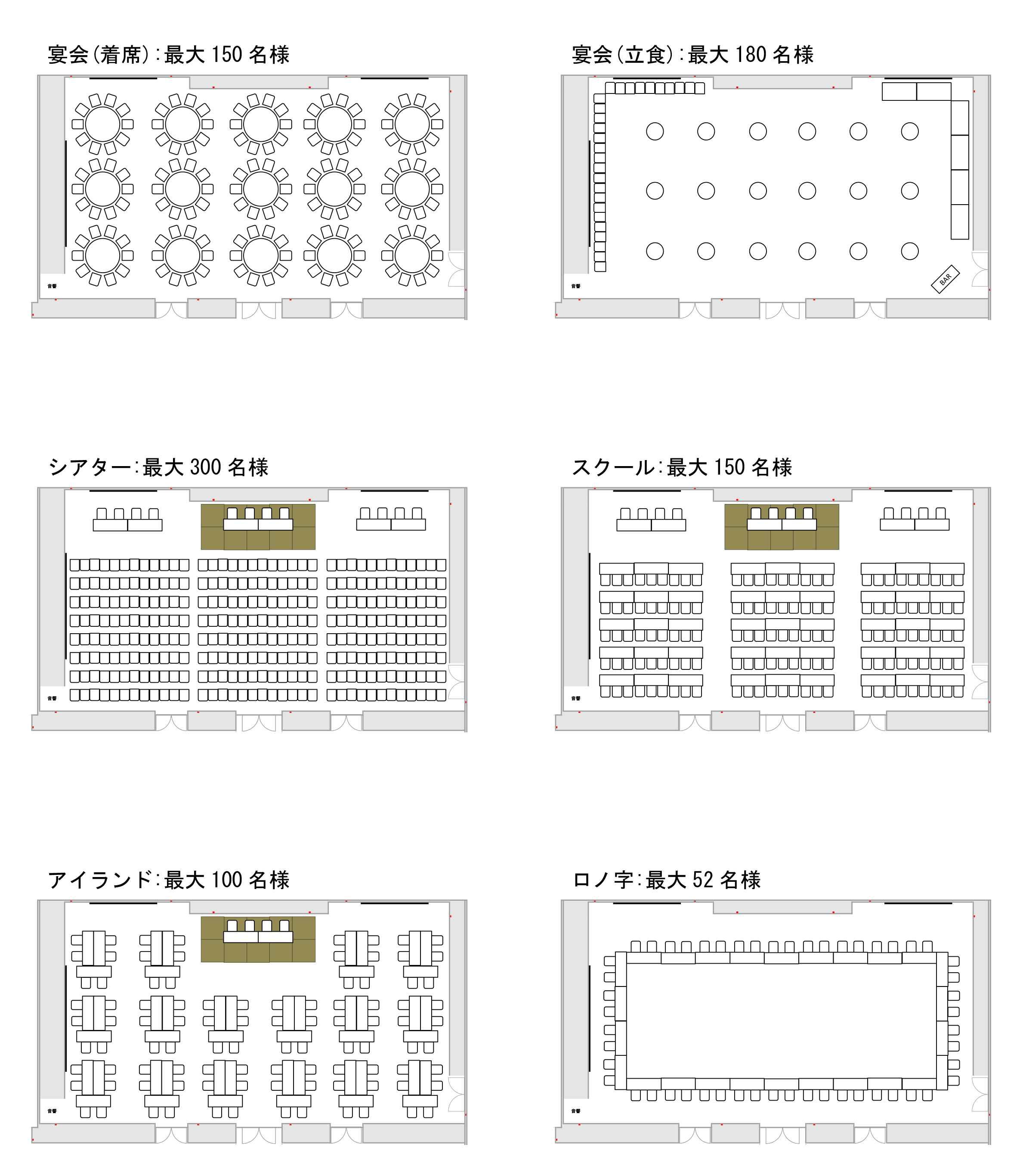 パーティーや宴会・会議、イベントや修学旅行のお食事など、さまざまなシーンでご利用いただける“多目的ルーム”をご用意。会場のレイアウトや用途など、お気軽にお問合せください。
