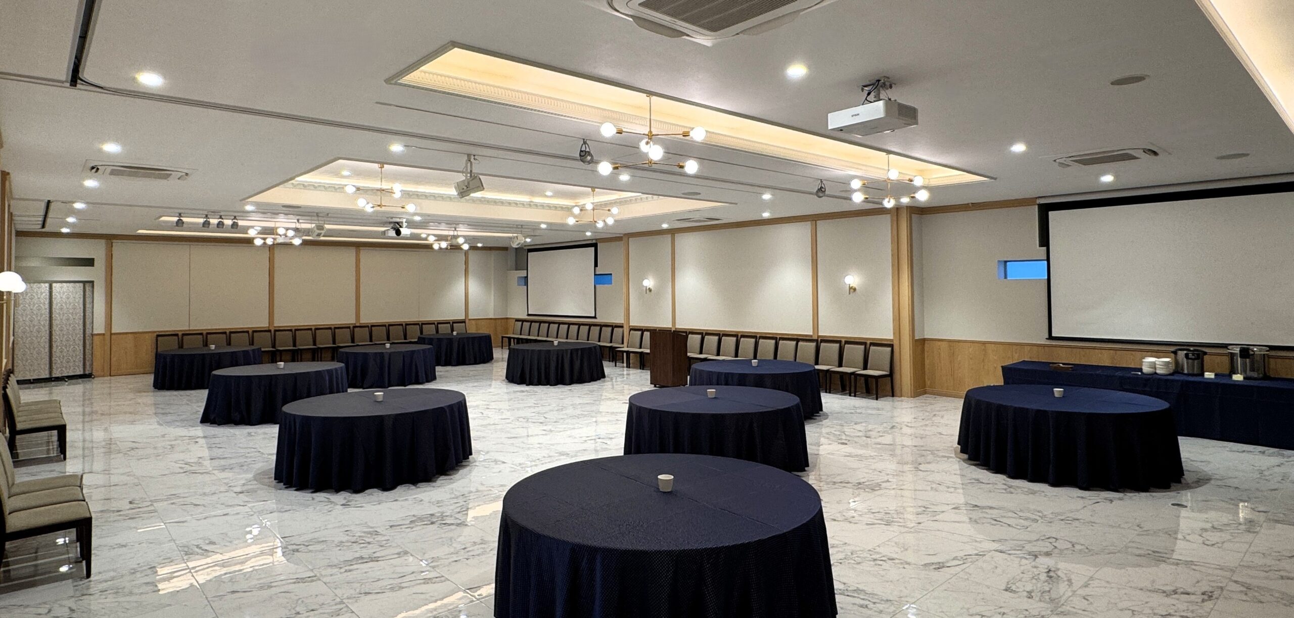 パーティーや宴会・会議、イベントや修学旅行のお食事など、さまざまなシーンでご利用いただける“多目的ルーム”をご用意。会場のレイアウトや用途など、お気軽にお問合せください。