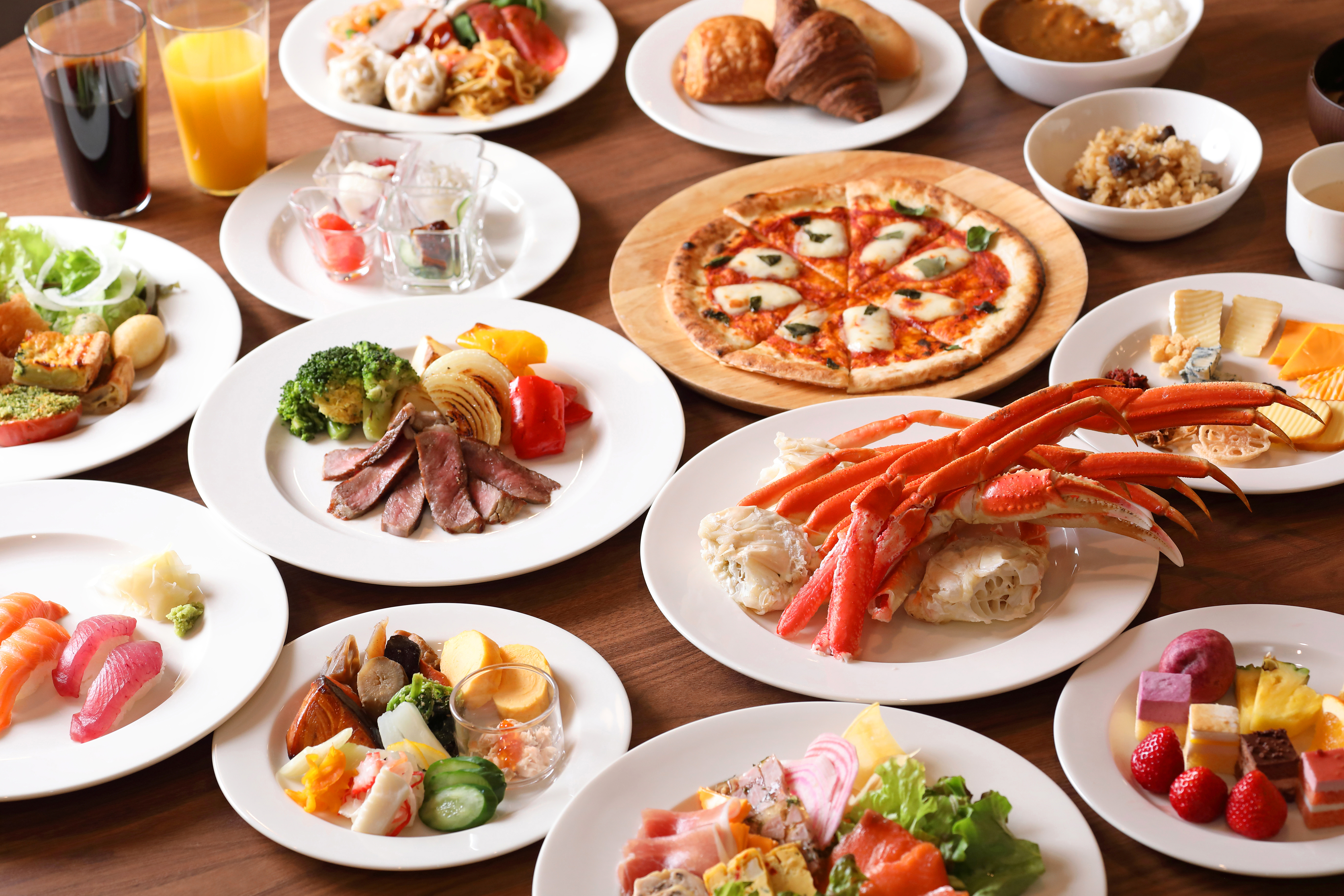 シェフが目の前で仕上げる“ライブメニュー”を、ビュッフェスタイルでお楽しみいただけます。