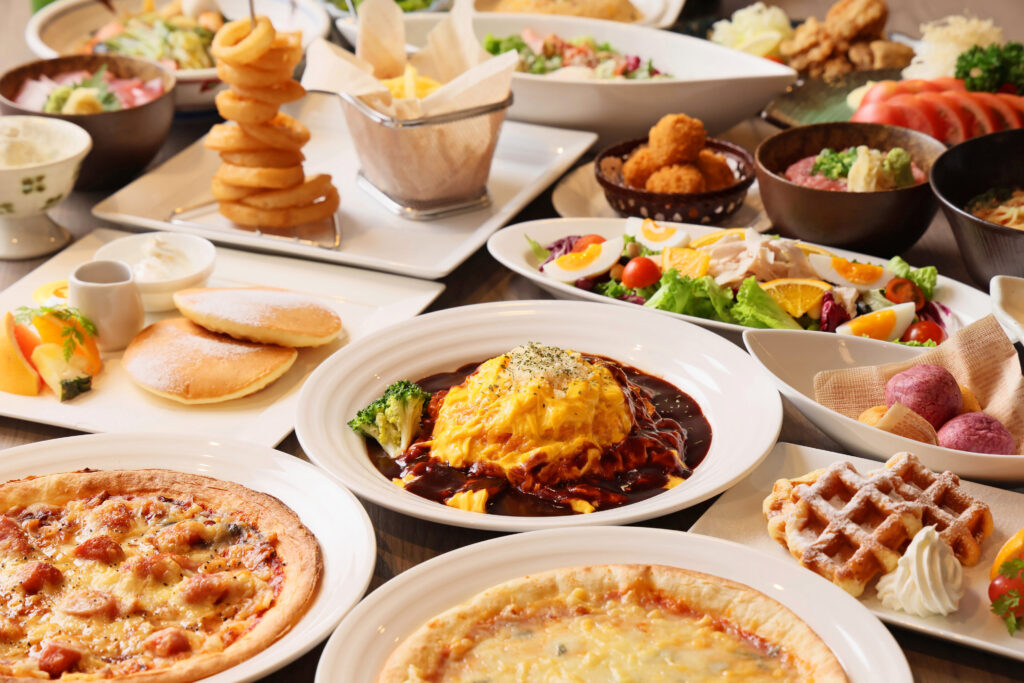 レストランでは全てのメニューを同一の厨房で調理しており、そのためアレルゲンは完全に除去されるわけではなく、一部残留する可能性があります。