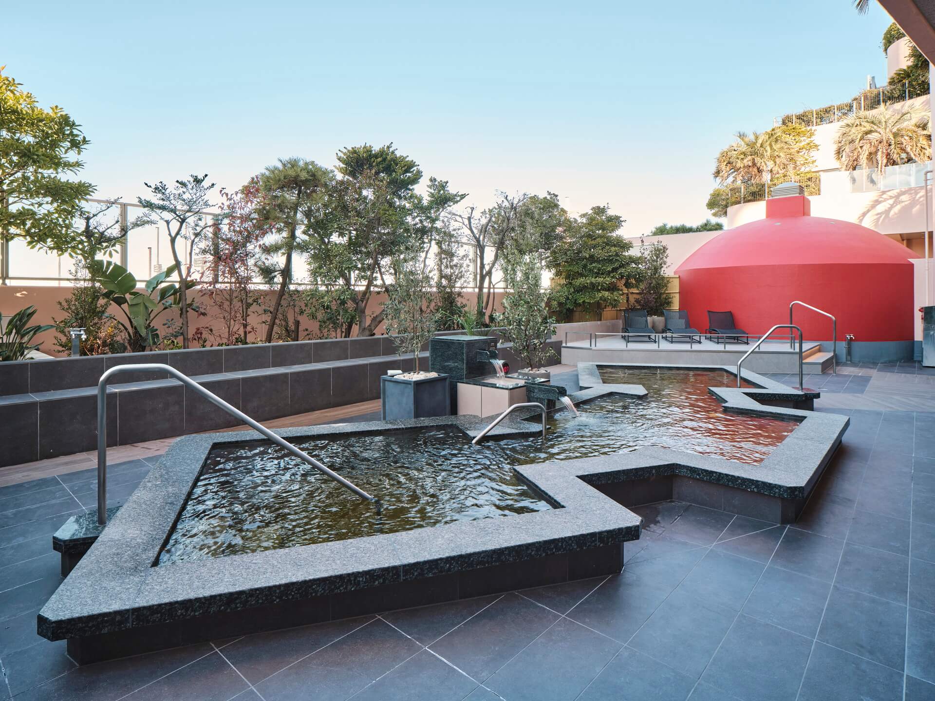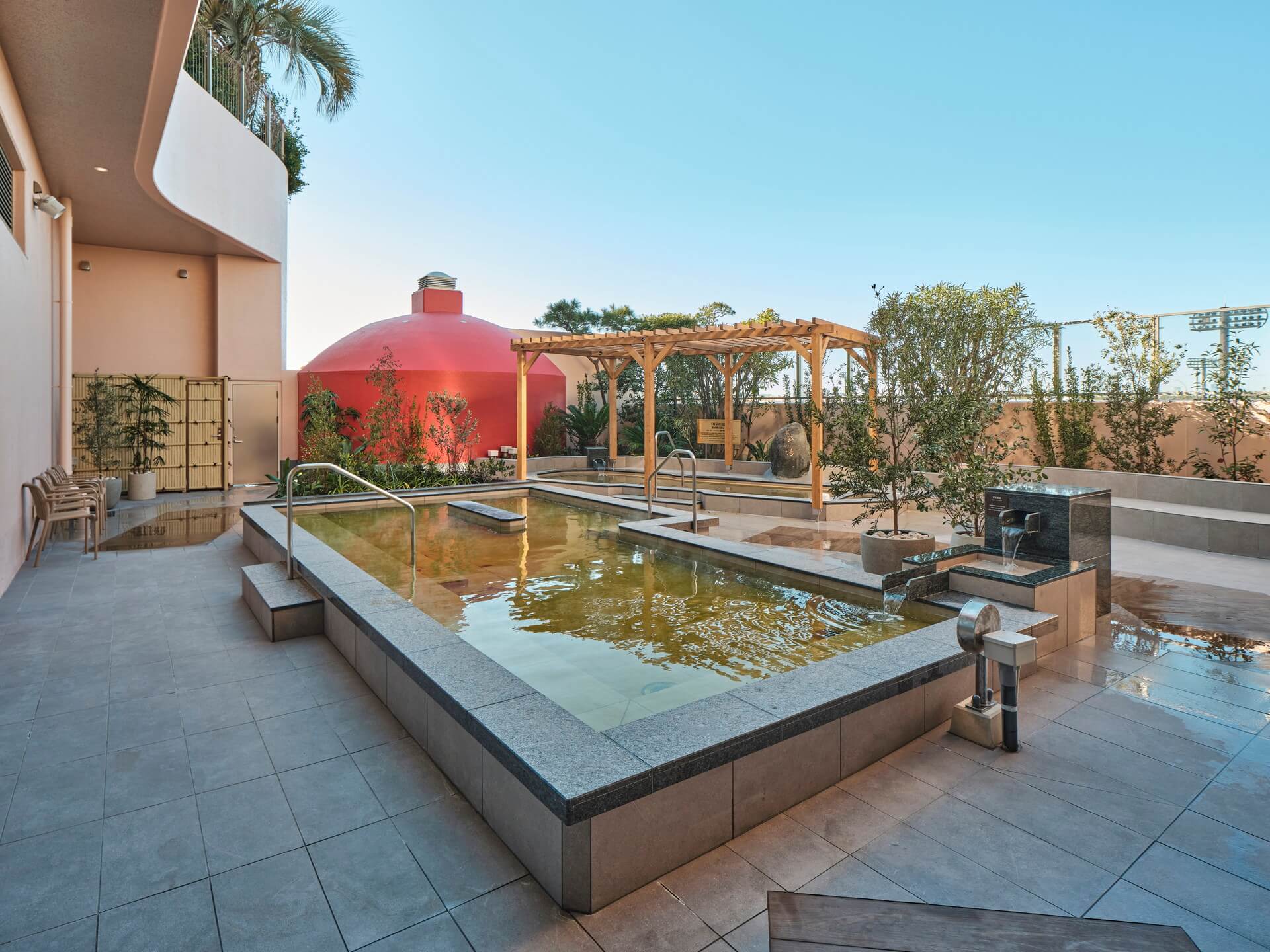 源泉掛け流しの天然露天温泉など13種類のお風呂と、個性豊かな本格サウナ8種類が堪能できる、男女別のスパエリアです。
